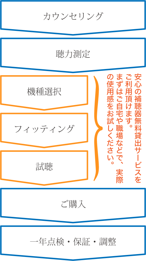 ご来店からご購入まで。補聴器を快適にお使いいただくために。
